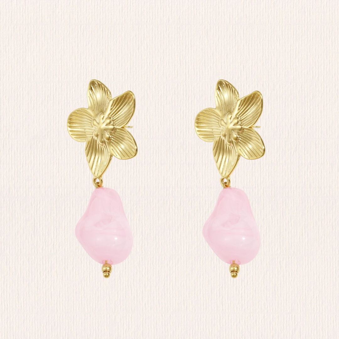 Deze speelse bloemenoorbellen zijn een echte must-have voor jouw earparty! Dankzij het gebruik van roestvrij staal blijven ze lang mooi en verkleuren ze niet. Verkrijgbaar in verschillende kleuren.