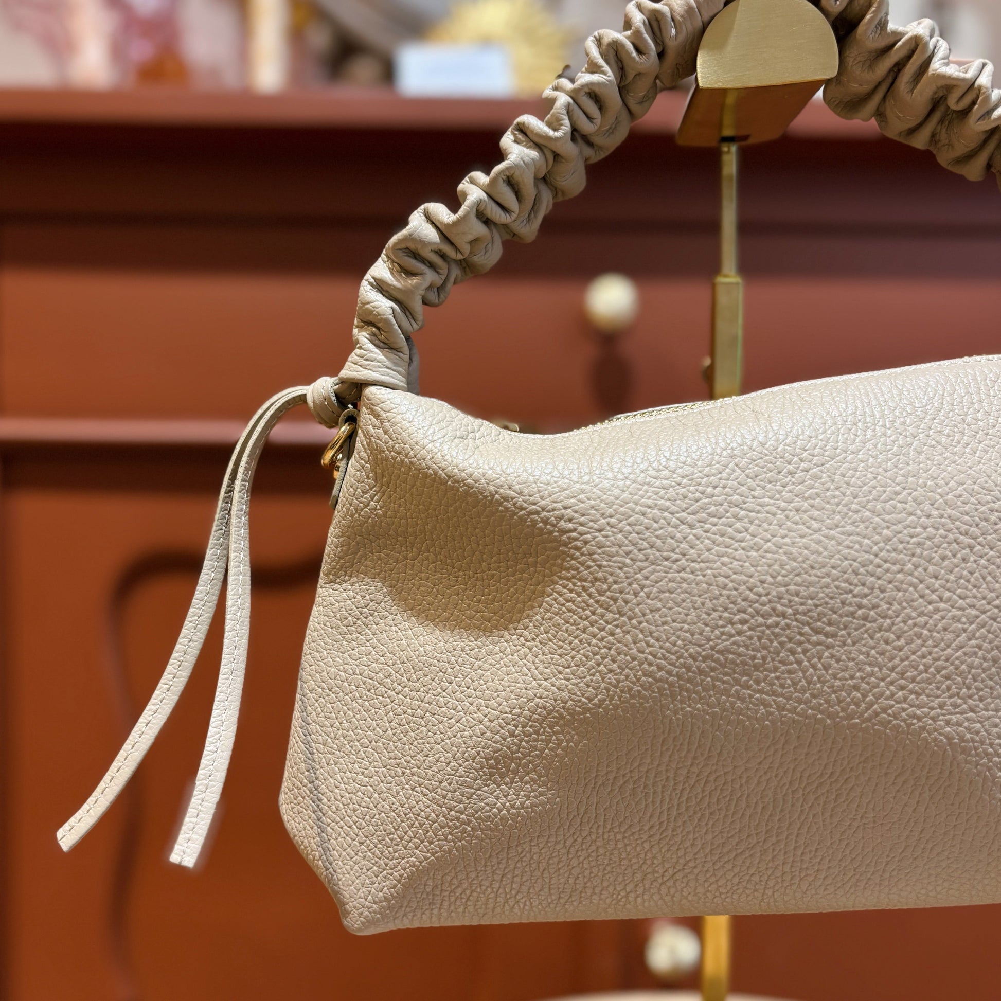 Beige leren handtasje