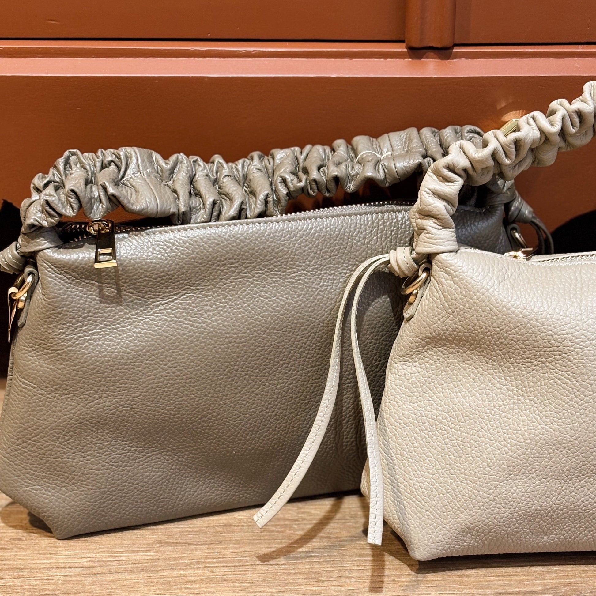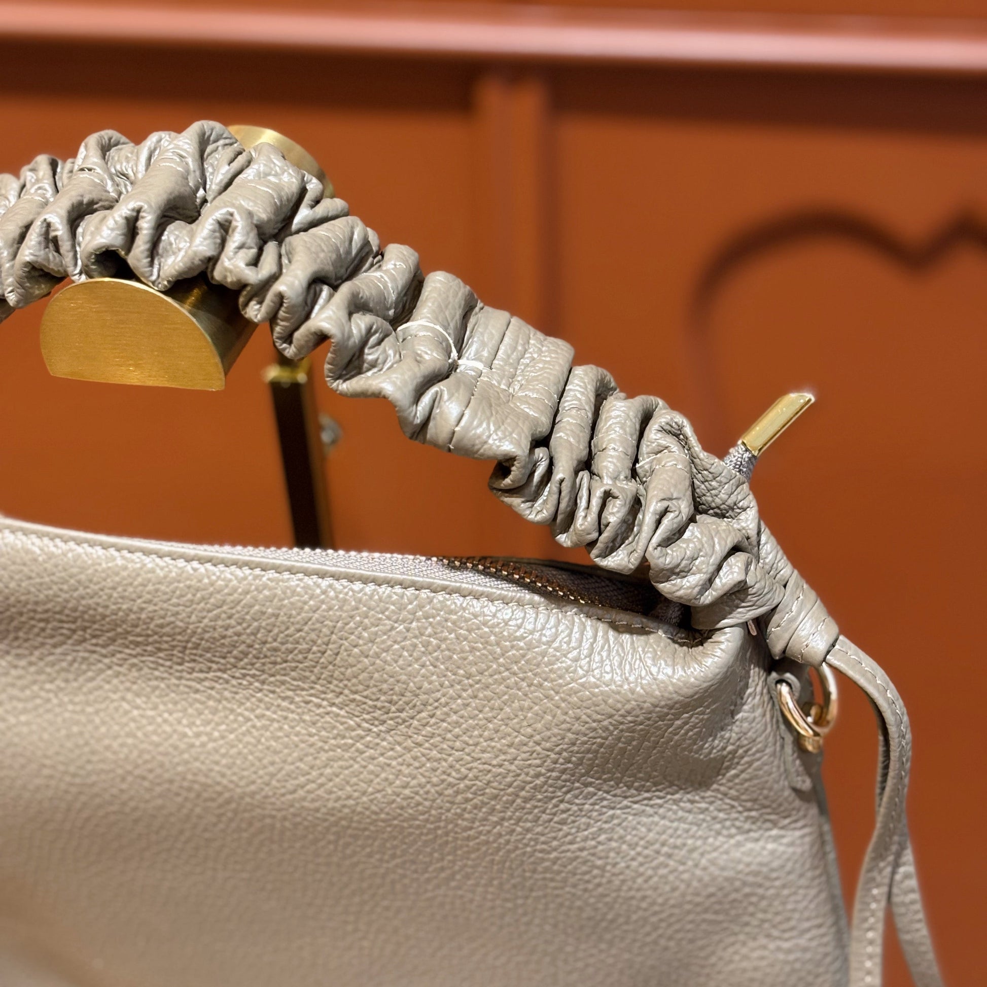 Donker taupe leren handtasje