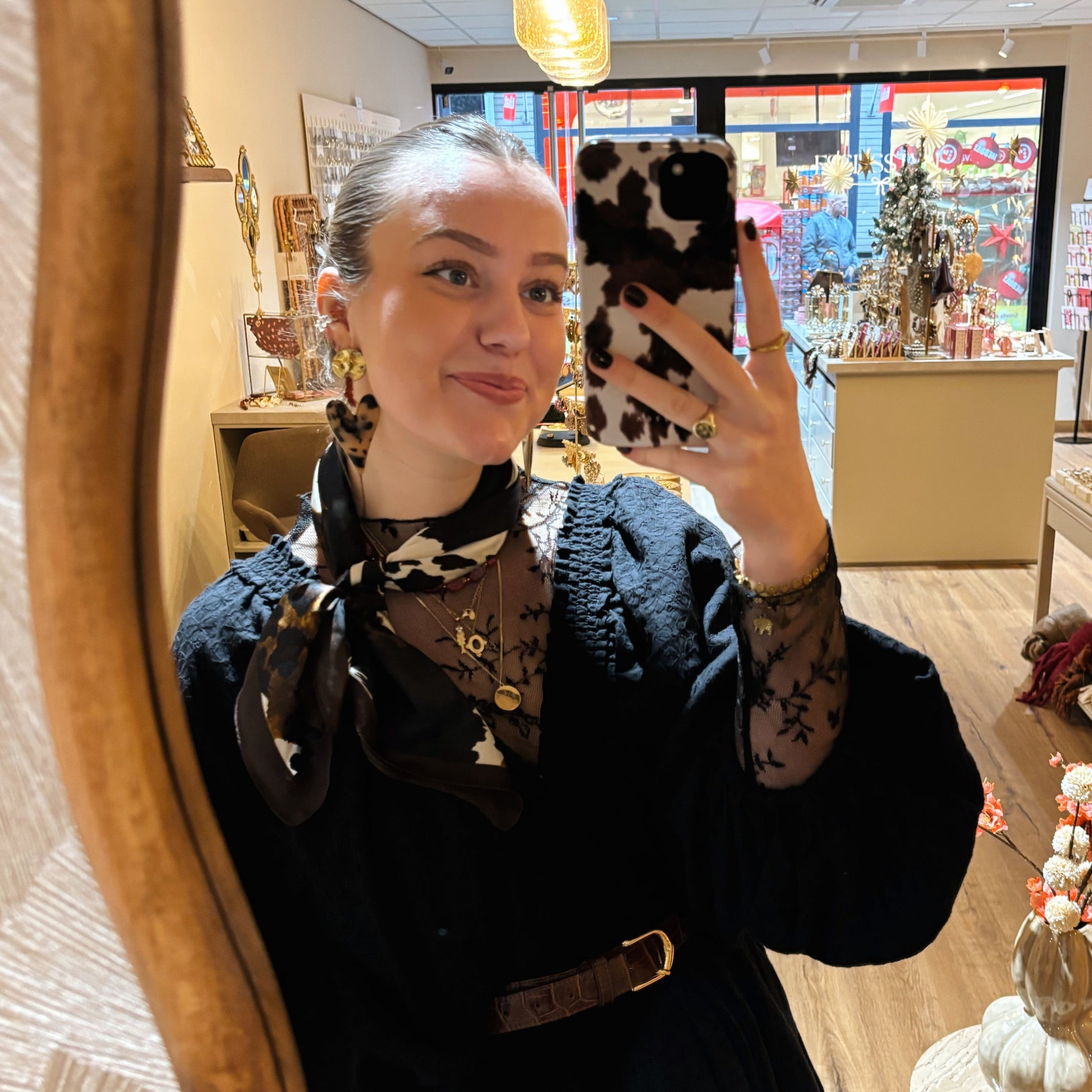 Klein sjaaltje met motiefje, leuk voor om je hals, tas of pols!