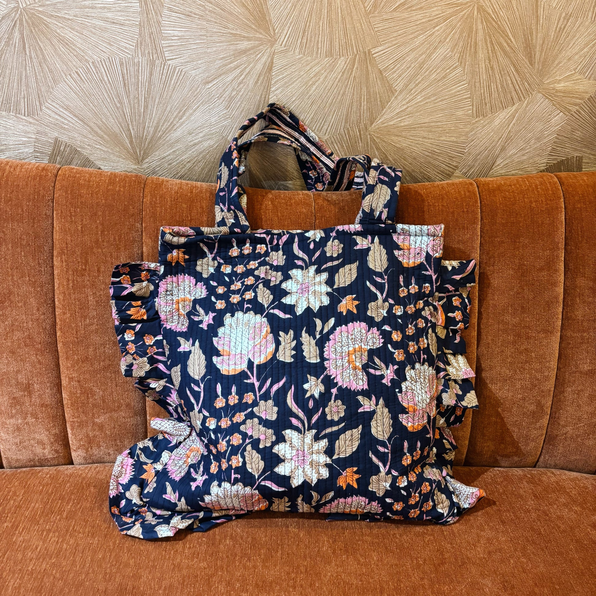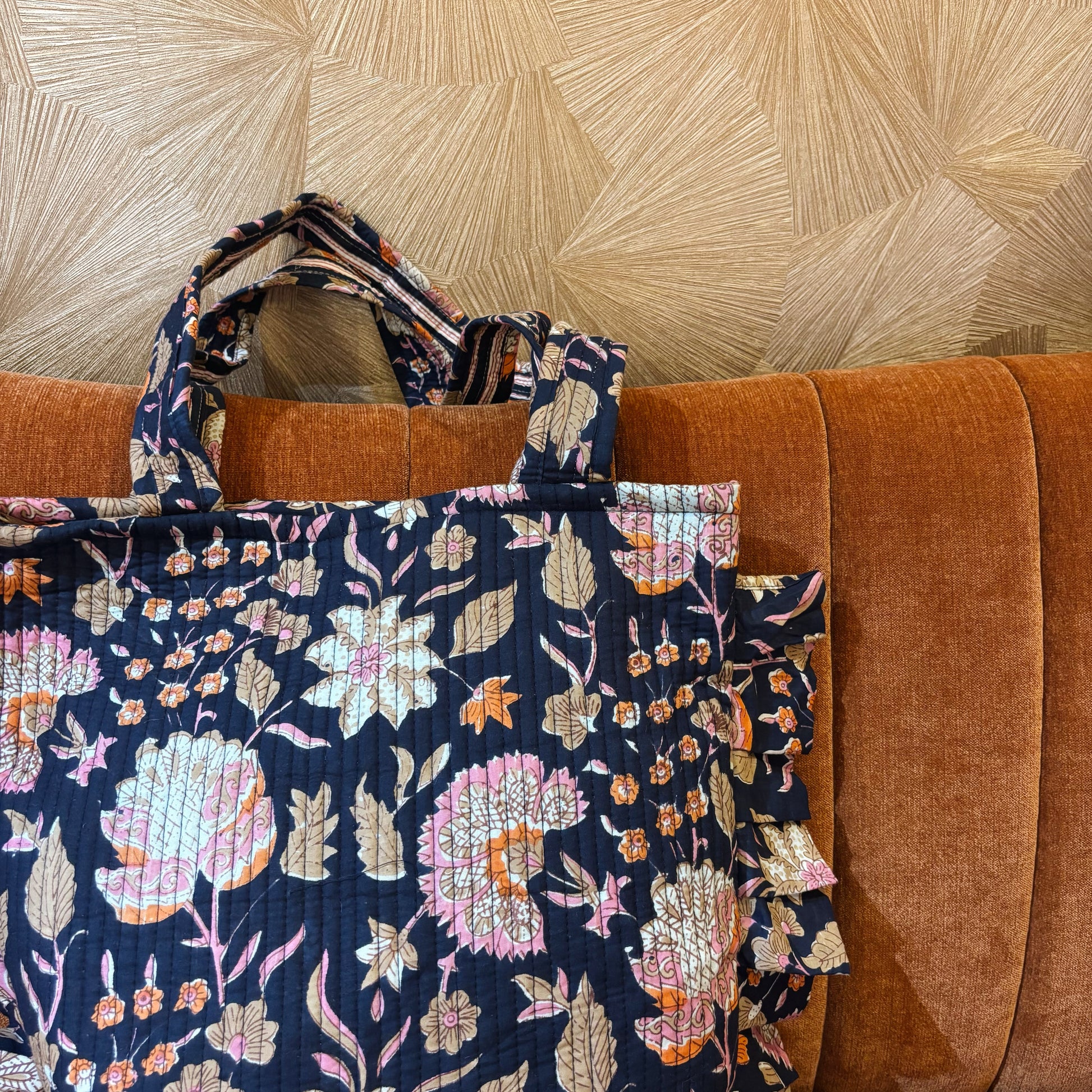 Ruime strandtas/weekendtas met vrolijke bloemenprint. De tas heeft een groot hoofdvak met een klein binnenzakje voor je essentials. Sluitbaar met een rits voor extra veiligheid.