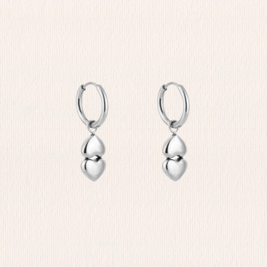 Oorbellen dubbel hartje mini