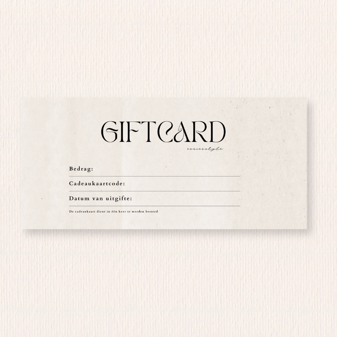 - De cadeaukaart is onbeperkt geldig en te besteden via de webshop en in de Essiesstyle winkel.