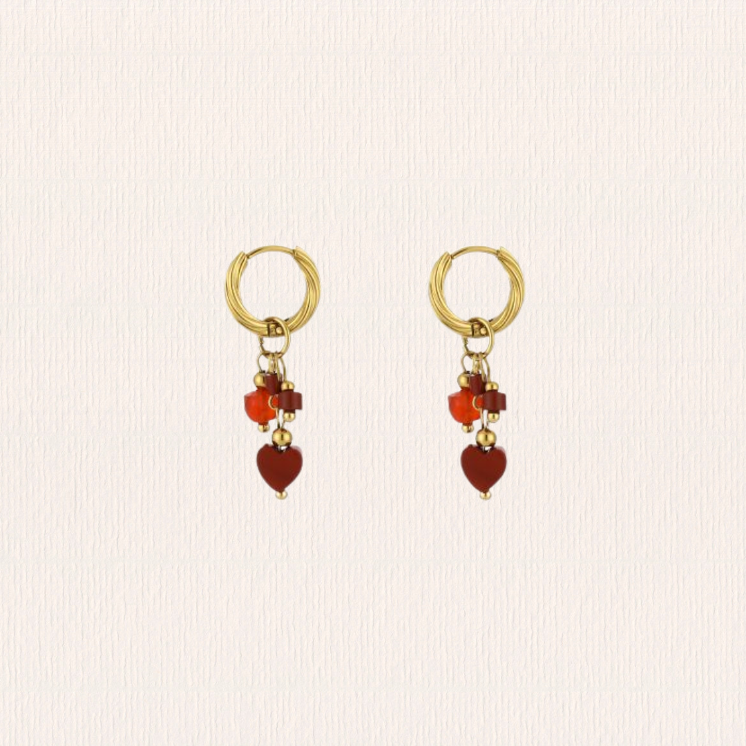 Hartjes natuursteenoorbellen - oranje