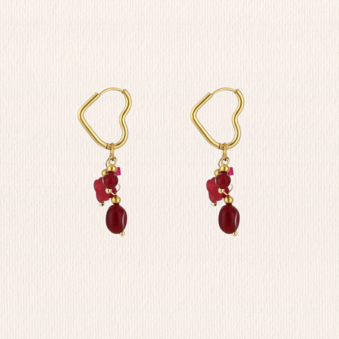 Hartvormige natuursteenoorbellen - rood