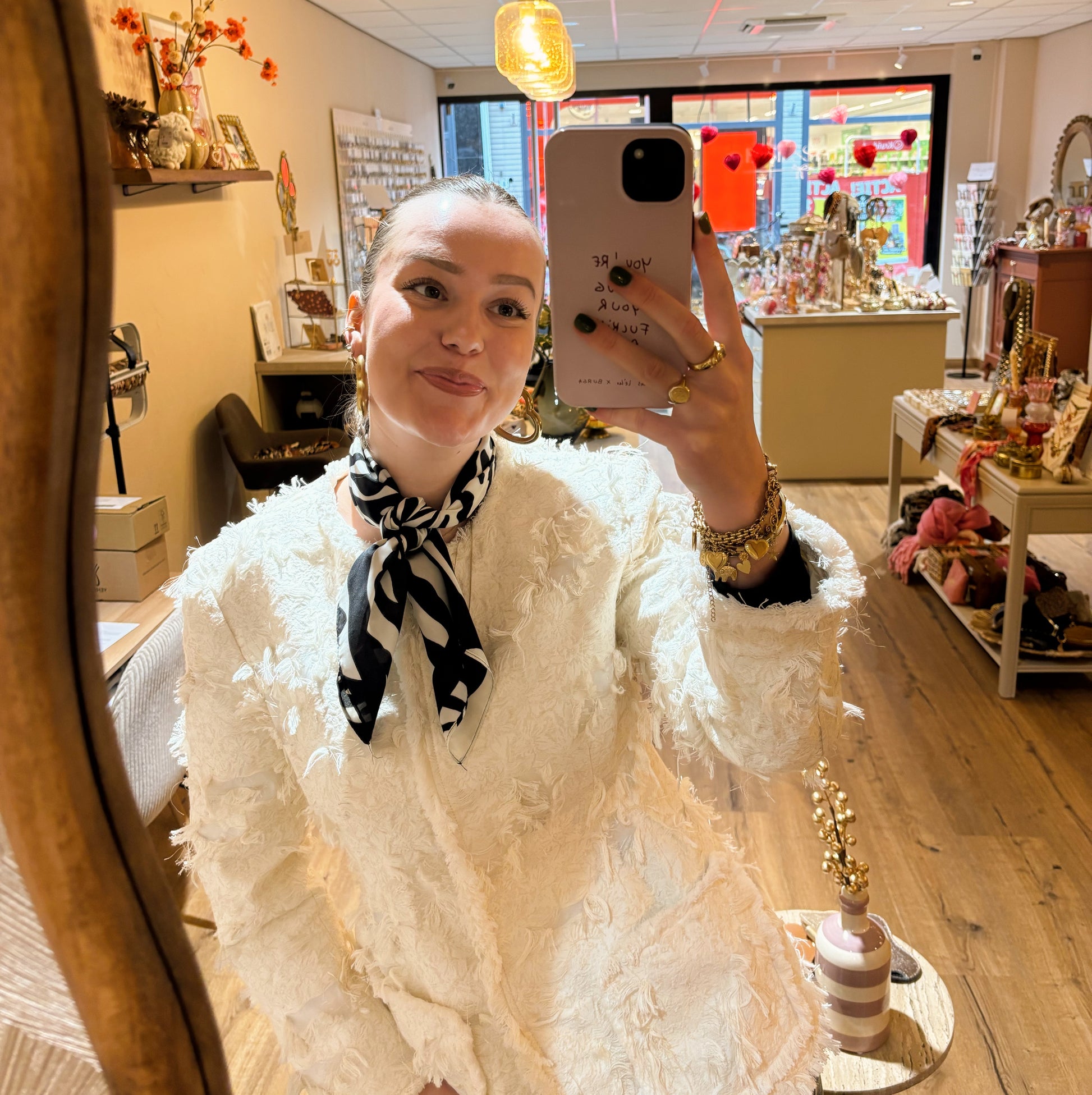 Klein sjaaltje met motiefje, leuk voor om je hals, tas of pols!