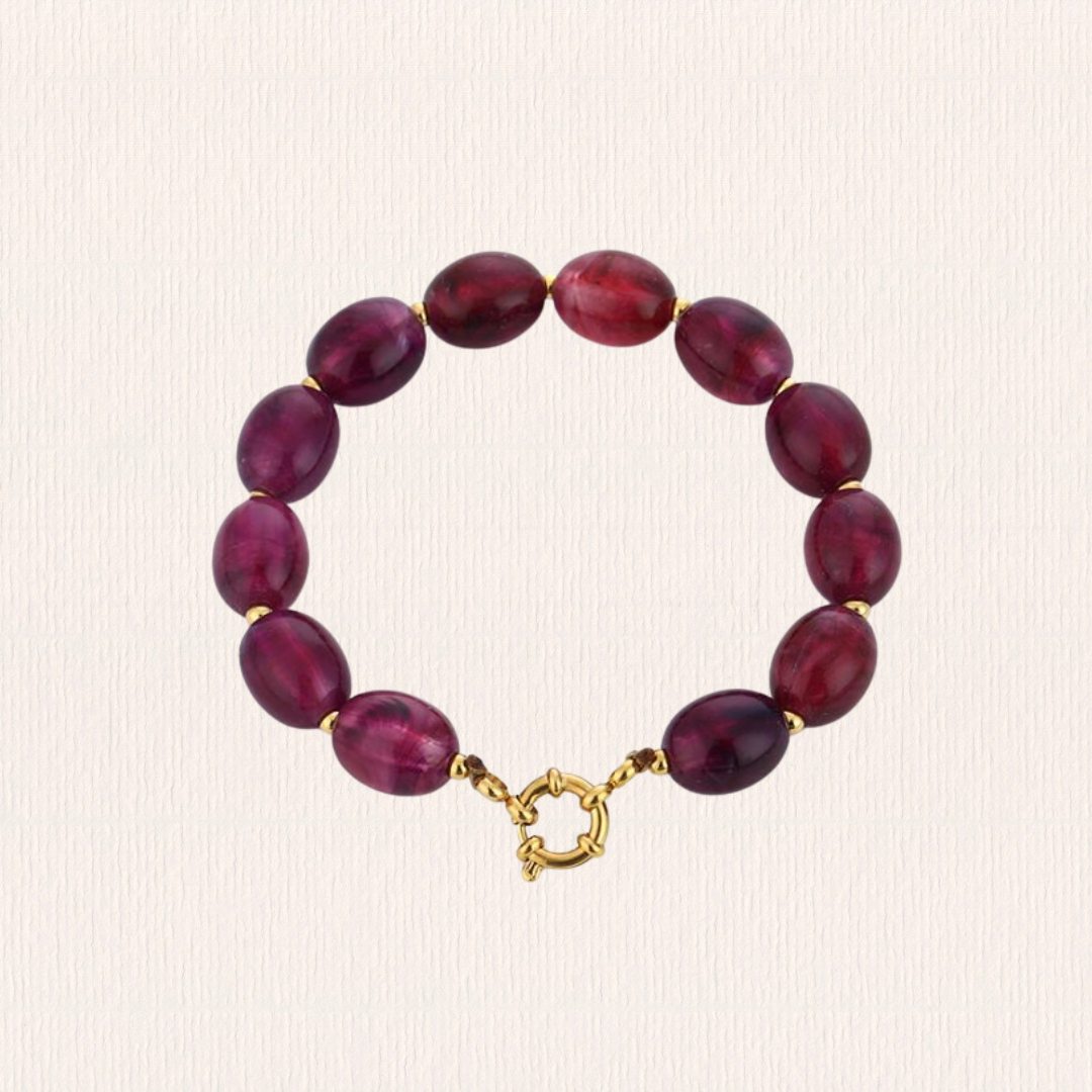 Gezellige natuursteenlook armband, gemaakt van roestvrijstaal.