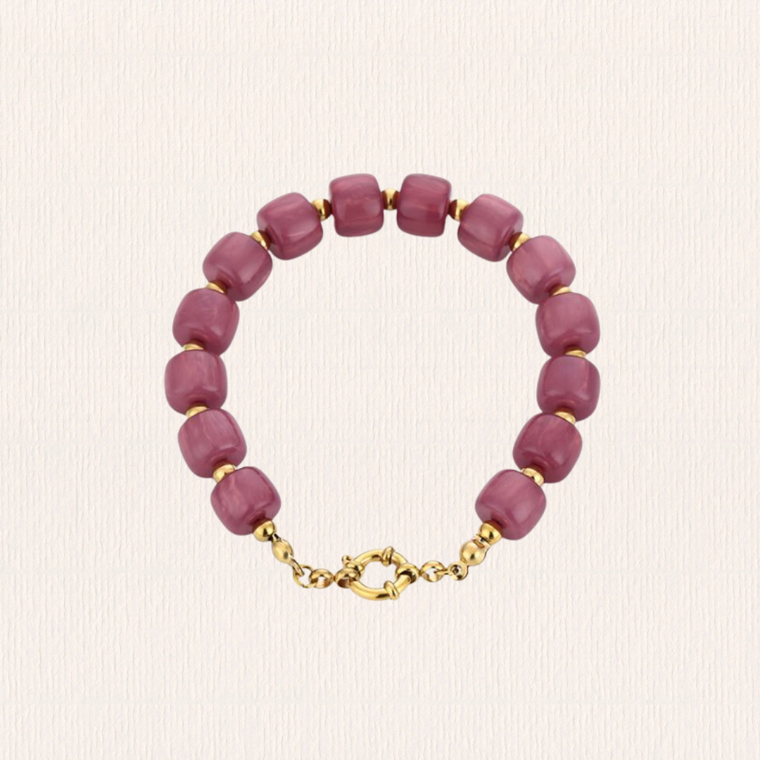 Gezellige natuursteenlook armband, gemaakt van roestvrijstaal.
