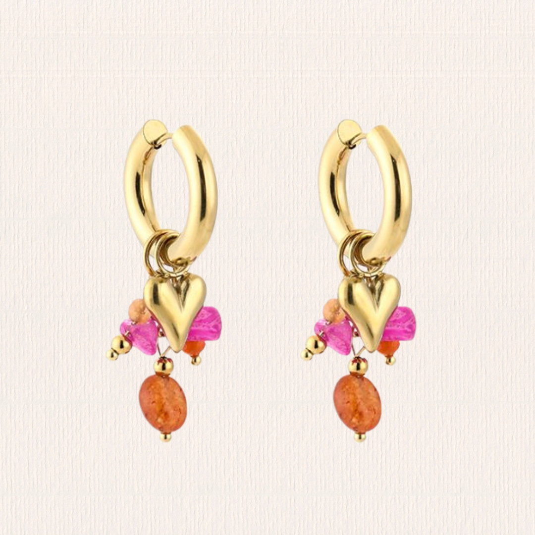 Natuursteenoorbellen hartjes - roze