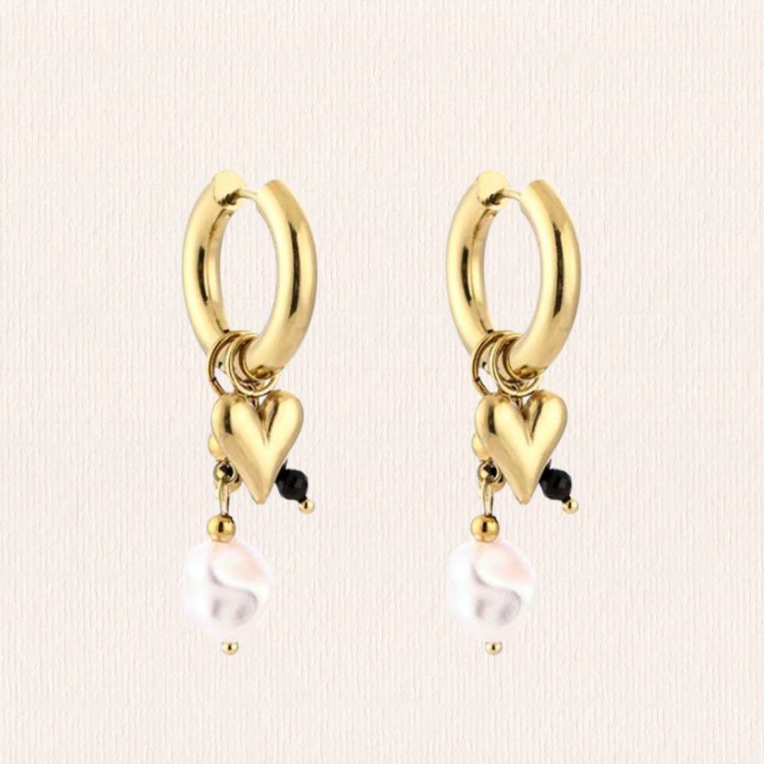 Natuursteenoorbellen hartjes - zwart