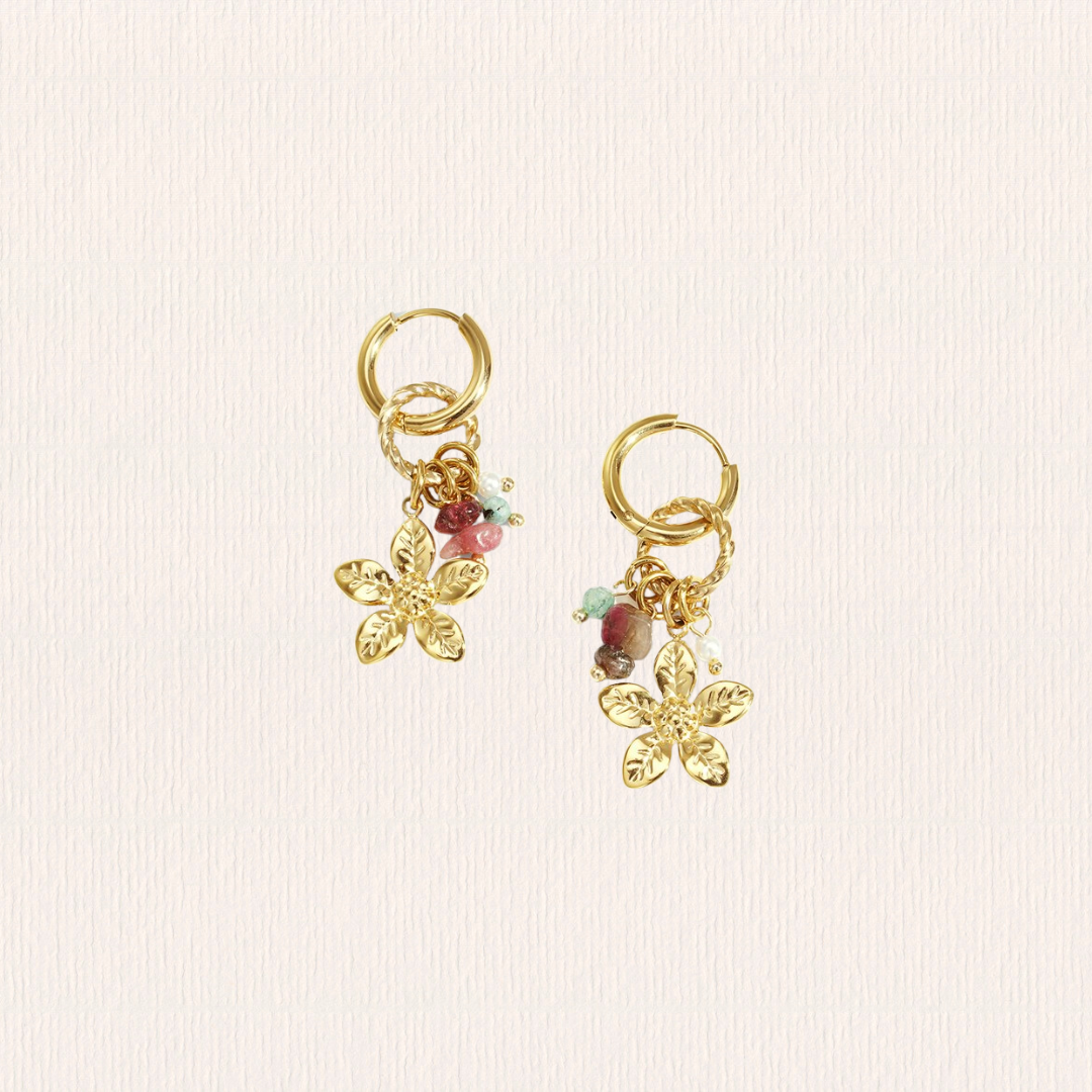 Oorbellen bloem met roze bedels