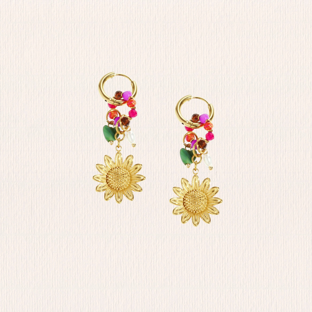 Oorbellen bloem met kleurrijk detail