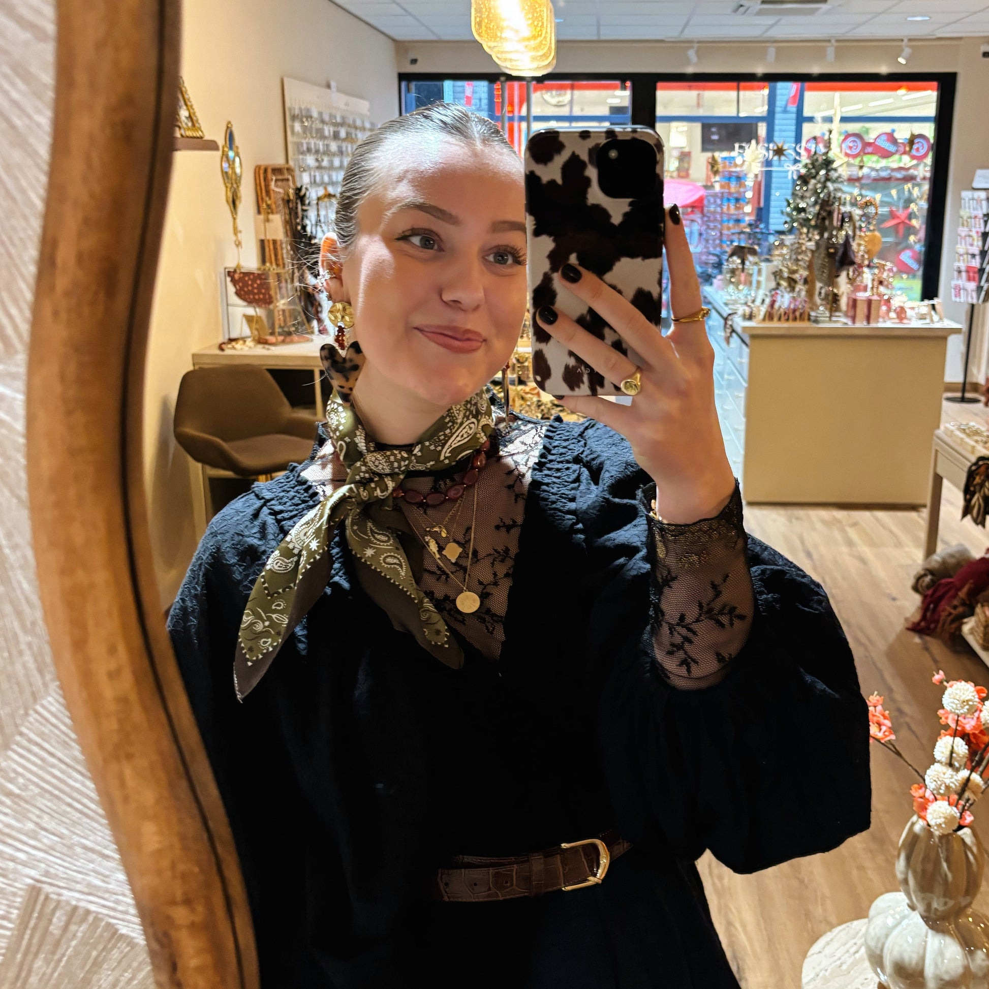 Klein sjaaltje met motiefje, leuk voor om je hals, tas of pols!