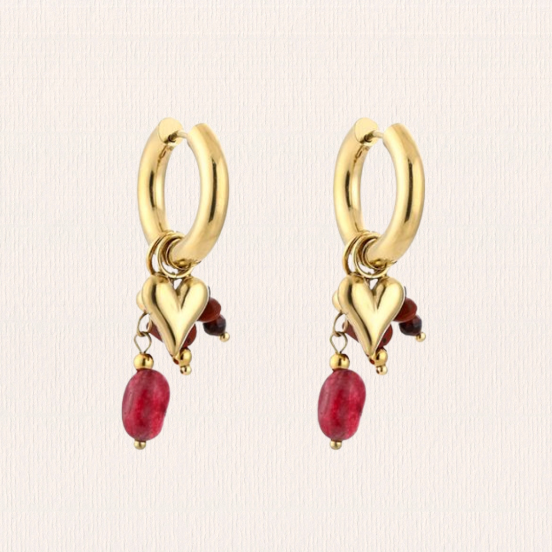 Natuursteenoorbellen hartjes - rood