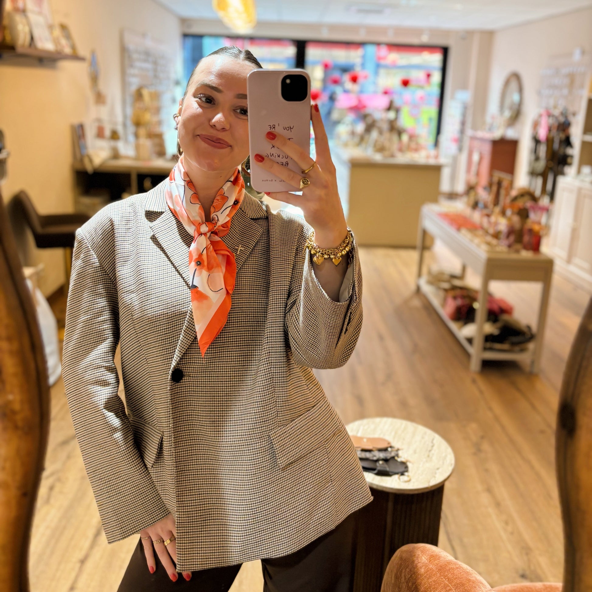 Klein sjaaltje met motiefje, leuk voor om je hals, tas of pols!