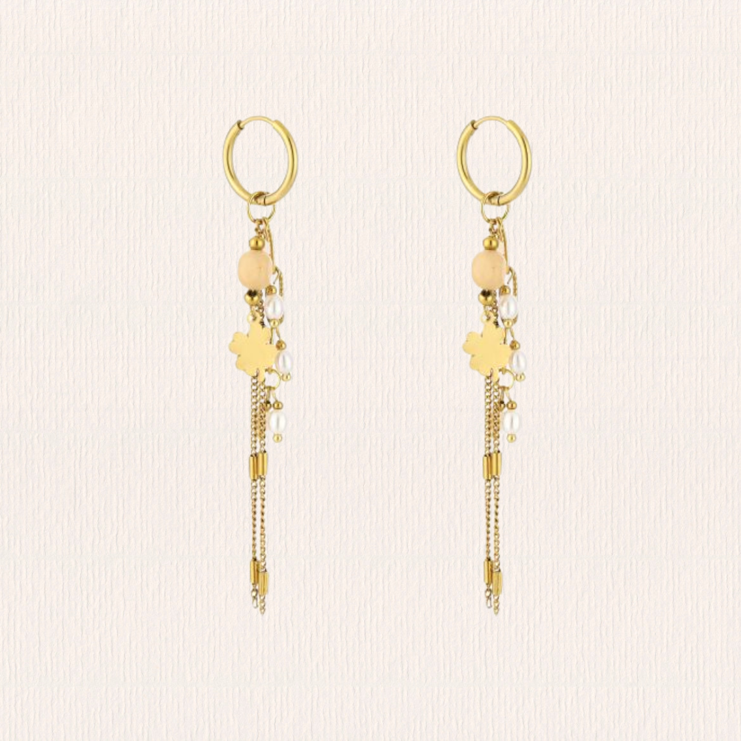 Deze speelse natuursteenoorbellen zijn een echte must-have voor jouw earparty! De natuursteentjes geven een tijdloze én vrolijke uitstraling. Dankzij het gebruik van roestvrij staal blijven ze lang mooi en verkleuren ze niet. Verkrijgbaar in verschillende kleuren en stijlen, zodat er altijd een paar perfect bij jou past.