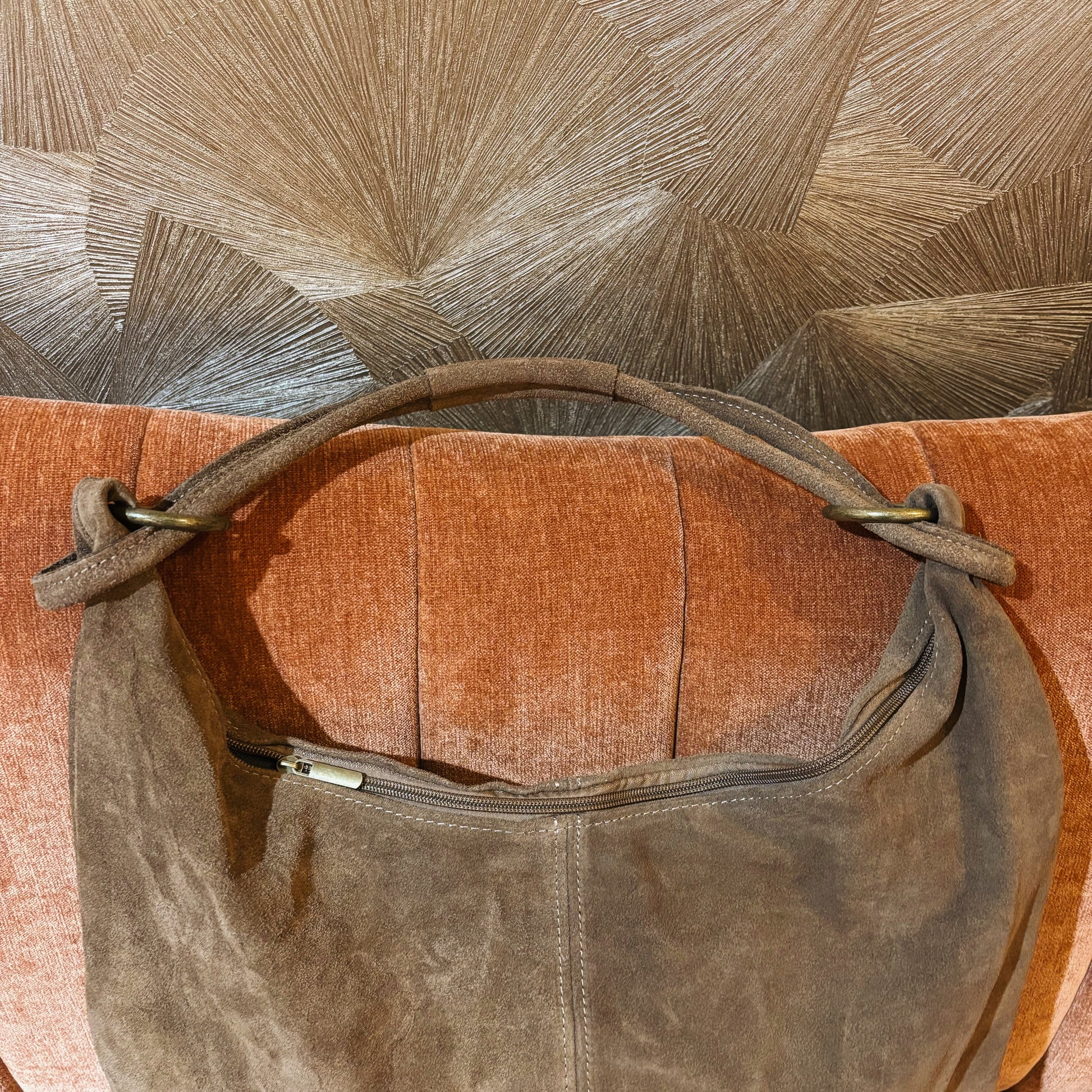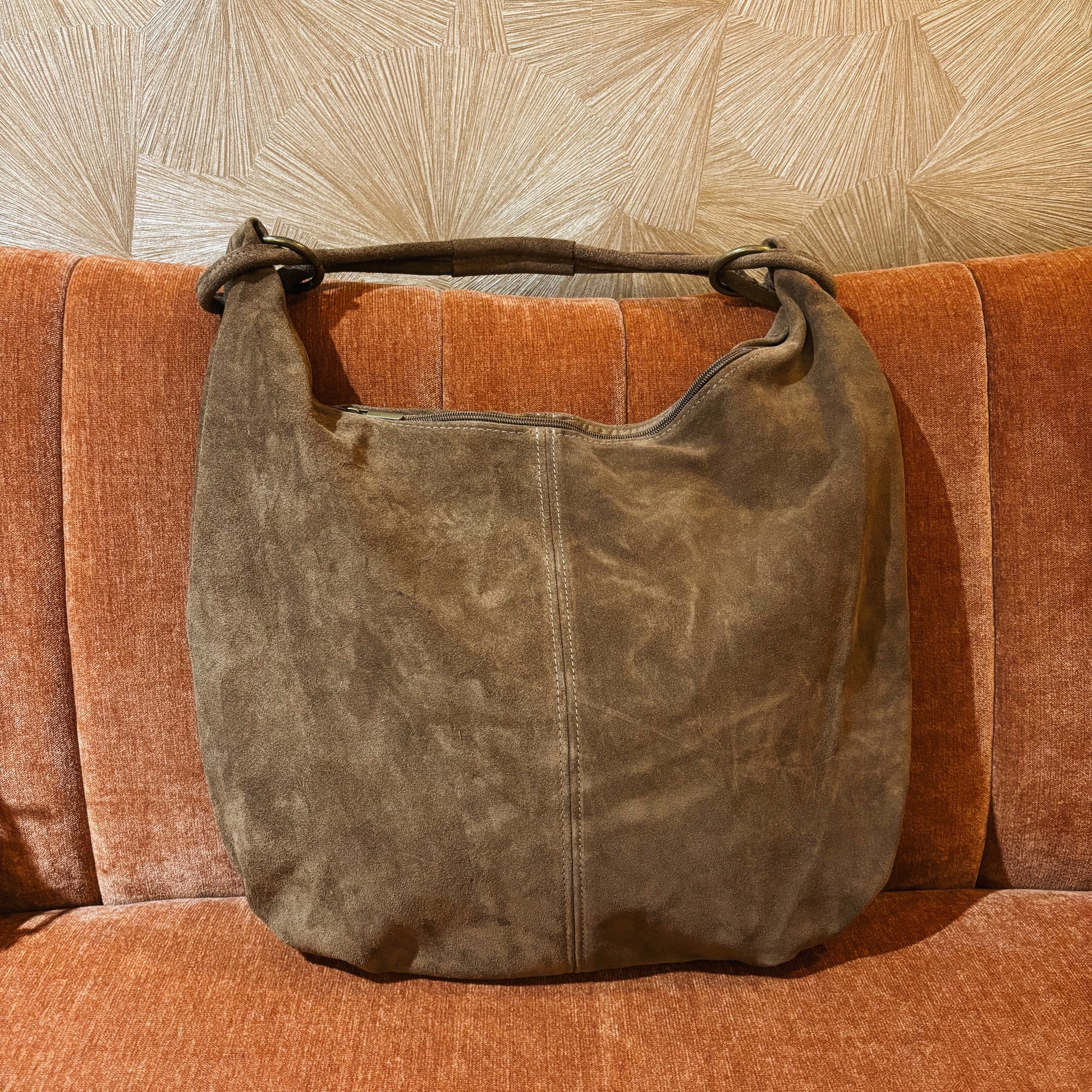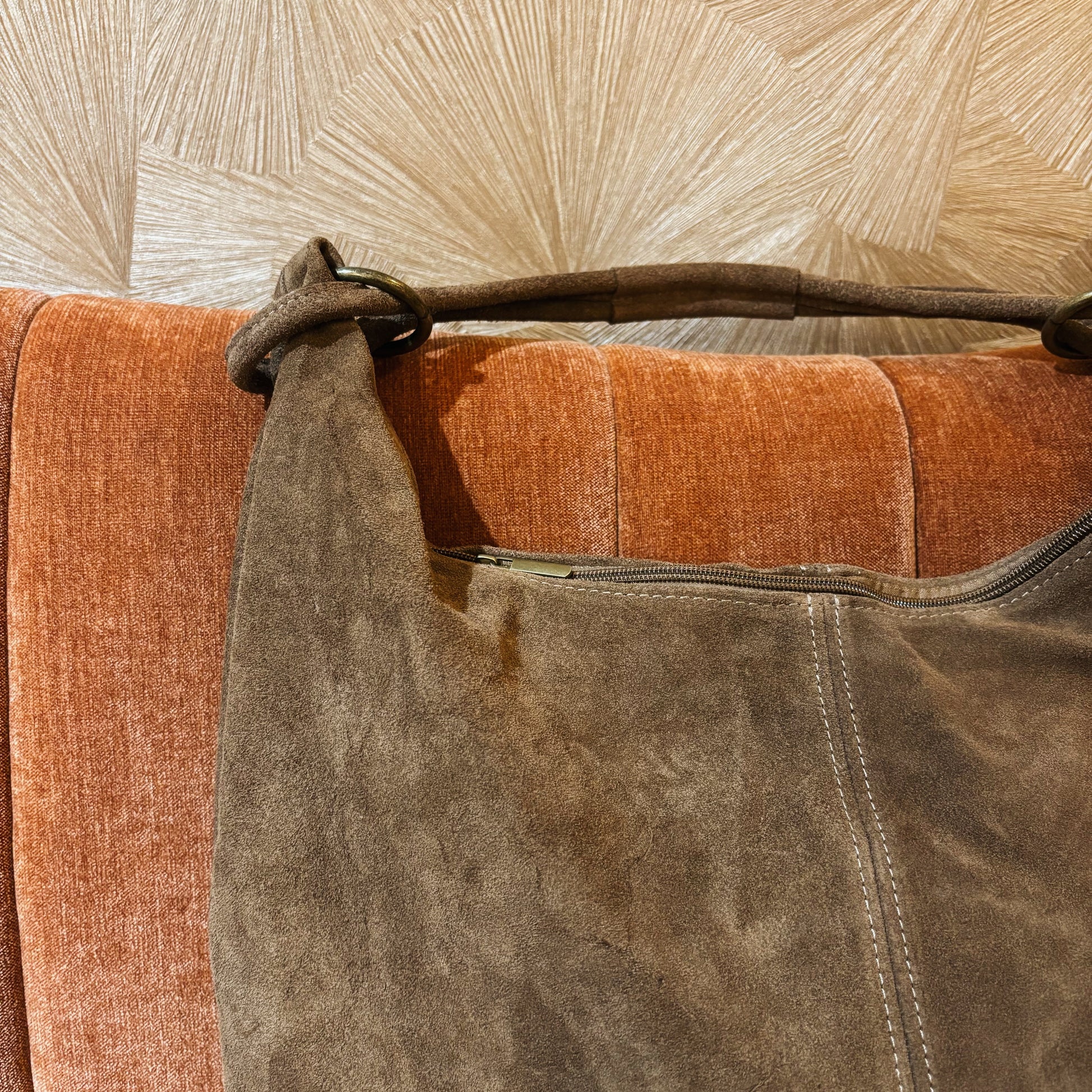 Elegante schoudertas van 100% suède leer in de kleur zand. De tas beschikt over een ruim hoofdvak met aan de binnenzijde een handig afsluitbaar steekvakje.