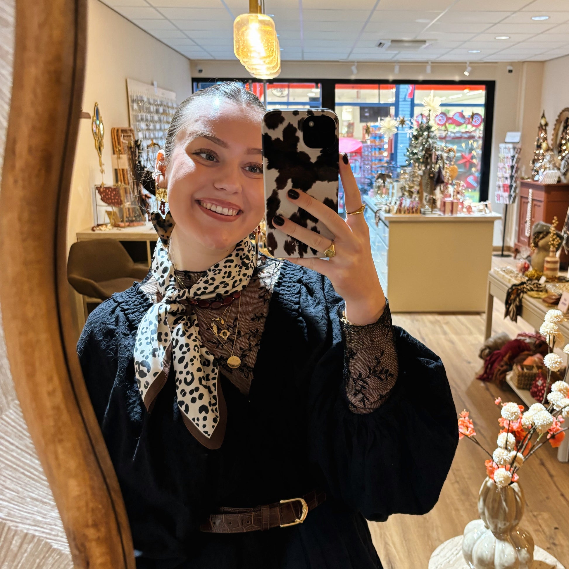Klein sjaaltje met motiefje, leuk voor om je hals, tas of pols!